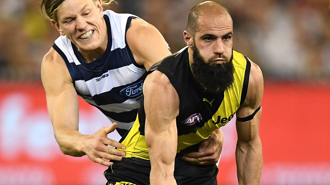 The geelong star flattened richmond's nick vlastuin in.